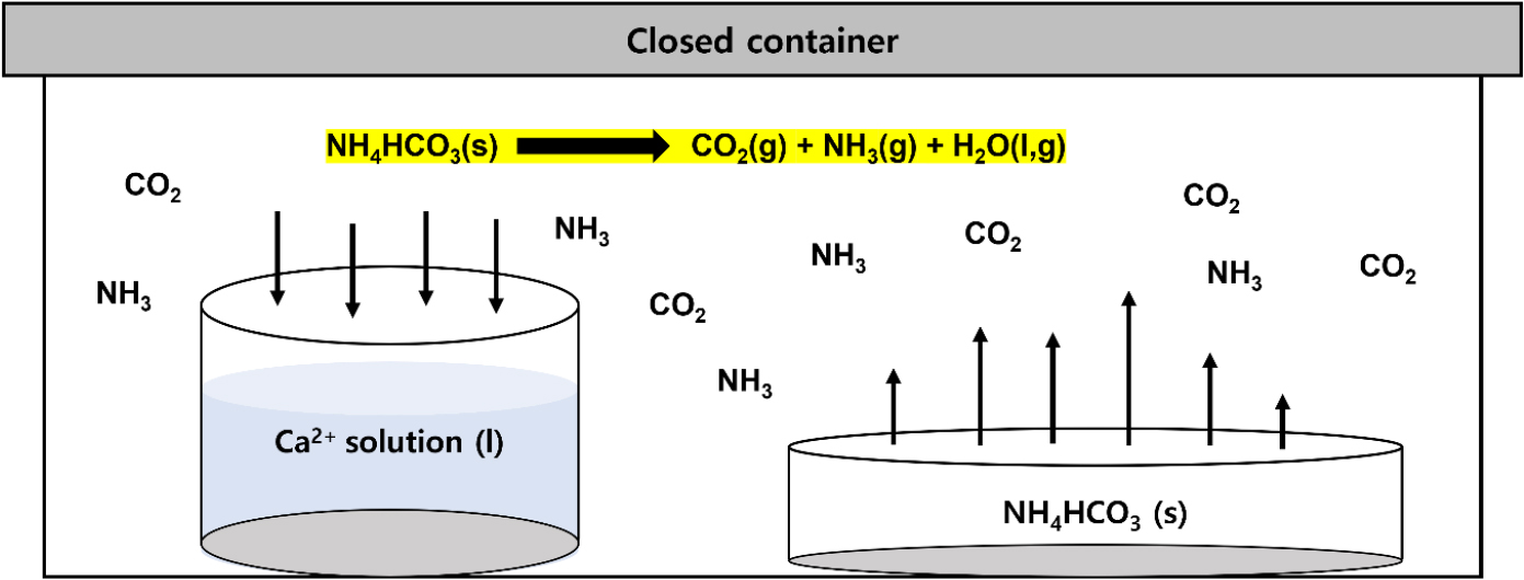 암모니아 기체 확산법에서 탄산칼슘(CaCO3) 다형체 형태와 상 선택성의 온도 의존성